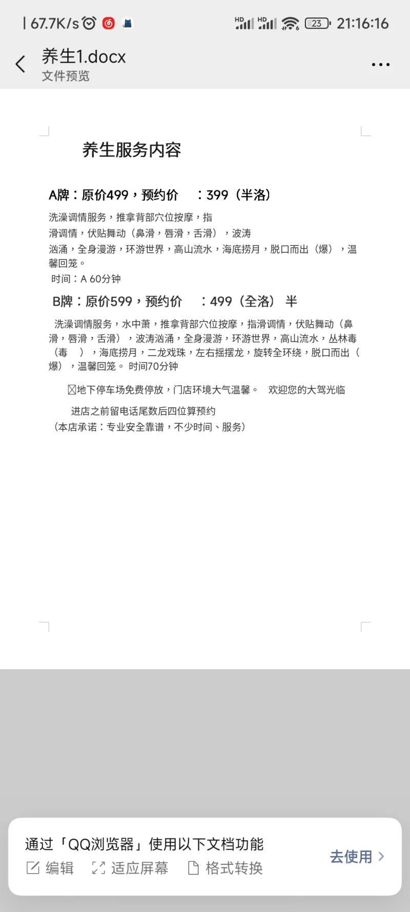 信息分类:酒店会所 地区:湖南省-湘潭 信息来源:自己 年龄:25 颜值身材:不错 服务项目:都有,完式 价格:499 799 环境设备:很不错 详细地址:本段信息已隐藏,请先登陆。点击登陆 , 或者 点击注册 联系方式(微信):本段信息已隐藏,请先登陆。点击登陆 , 或者 点击注册 详细介绍: 养生会所,点了33号,服务贼棒 酒店会所